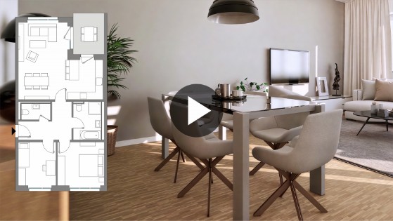 Drei Zimmer auf dem Papier - doch wie fließen sie ineinander? Wo liegen die Übergänge? Das 3D-Video führt durch die Wohnung, macht Proportionen sichtbar und zeigt die Räume so, wie sie erlebt werden: als Ganzes, nicht als einzelne Flächen.