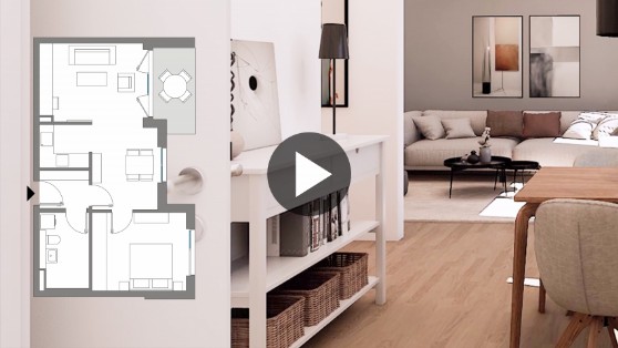 Bei kleineren Wohnungen fehlt oft die Vorstellung, wie sich die Räume anfühlen und sinnvoll einrichten lassen. Das 3D-Video zeigt auf einen Blick, wie großzügig der Wohnbereich tatsächlich ist und schafft Orientierung - die der Grundriss allein nicht geben kann.