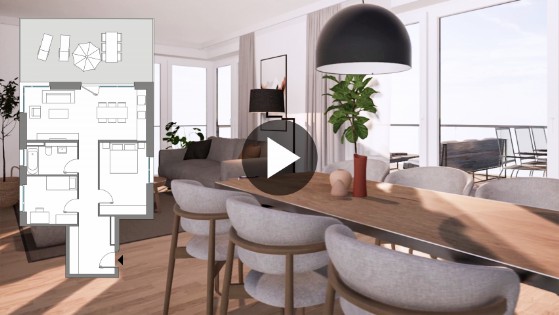 Was auf dem Plan nebeneinander liegt, wirkt im echten Erleben oft ganz anders. Das 3D-Video macht sichtbar, wie offen und fließend Innen- und Außenbereich zusammenpassen - und zeigt die Großzügigkeit der Wohnung auf einen Blick.